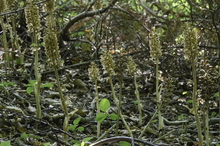 But just like the internet, it has a darker side, too. Some plants have found a way to exploit it; they have become hackers. The bird’s-nest orchid is a sickly-looking species by the colourful standards of its family. It grows in caramel-coloured spires in the shaded depths of woodlands and has no chlorophyll, so can’t photosynthesise to produce food like most plants. Instead, it sucks all it needs from the fungal mycelium that connects its own roots to those of the other plants growing around it, giving nothing in return.