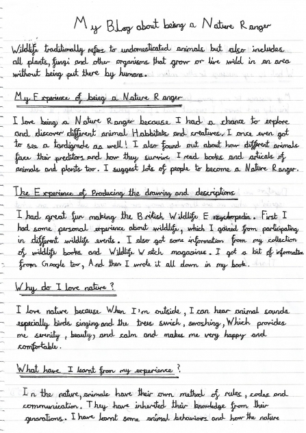 Congratulations to Lithumi who has recently completed her Wildlife Watch Nature Ranger Award. She shares her message for young nature lovers in her blog.