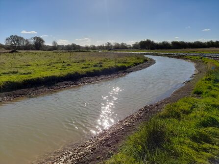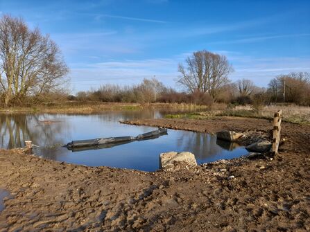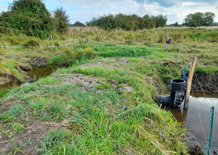 All the watercourses that run through the Duxford Old River area have been engineered to drain to the Wadley Stream. We installed two small earth mounds in the existing drainage channels, with flexible pipes to slow down water flows and allow wetland habitats to naturally extend beyond the current channel limits.