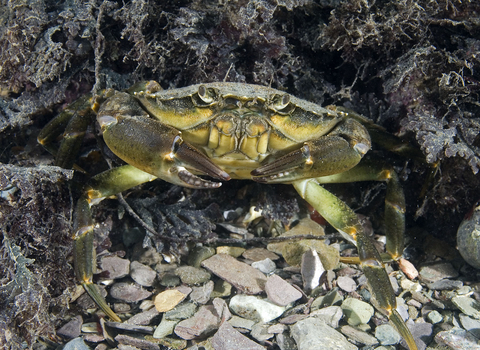 This crab is common around all of the UK. If you've ever been rockpooling or crabbing, it's probably the shore crab that you've met.