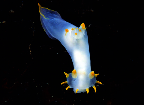 The yellow edged polycera has a translucent body with dashes of bright yellow. It appears as if it was created by a talented artist!The scientific name, Polycera kernowensis for this slug comes from the Greek words “polys” and “keras”, meaning “many” and “horns”, while “kernowensis” is derived from the old name for Cornwall, where the slug is commonly found.